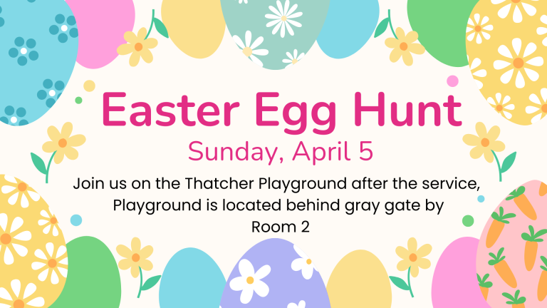 This Sunday kids and youth of all ages are invited to celebrate with us. We’ll have a Children’s Chapel about the season for kids and youth after the story. After the service, everyone is invited to come join us on the Thatcher Playground for the Easter Egg Hunt!