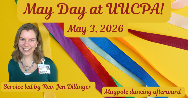 Join us on Sunday, May 3rd as we explore the meaning of May Day, an earth-centered celebration of spring’s vibrancy and creativity, and a time that also honors workers, collective action, and the ongoing pursuit of justice.