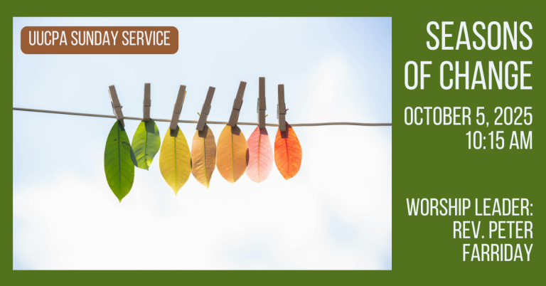 On the first Sunday of this autumn change of season, and in this time of transitional exploration at UUCPA, our service looks at some challenges and opportunities of change.