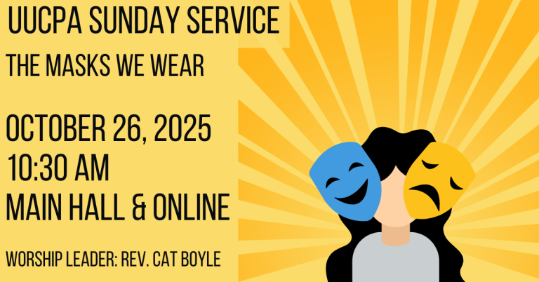 If you prefer to join the community of those attending online, there are two options. One, join the service via Zoom bit.ly/uucpa_service_1030am_v3. To get the passcode, email sundayservice@uucpa.org or call UUCPA’s outgoing voicemail message, 650-494-0541. It is also included in the weekly update emails. Two, to watch the service live on our Facebook page (no passcode required), visit UUCPA’s live Facebook feed. You can follow along in the order of service, bit.ly/uucpa_oos_20251026.